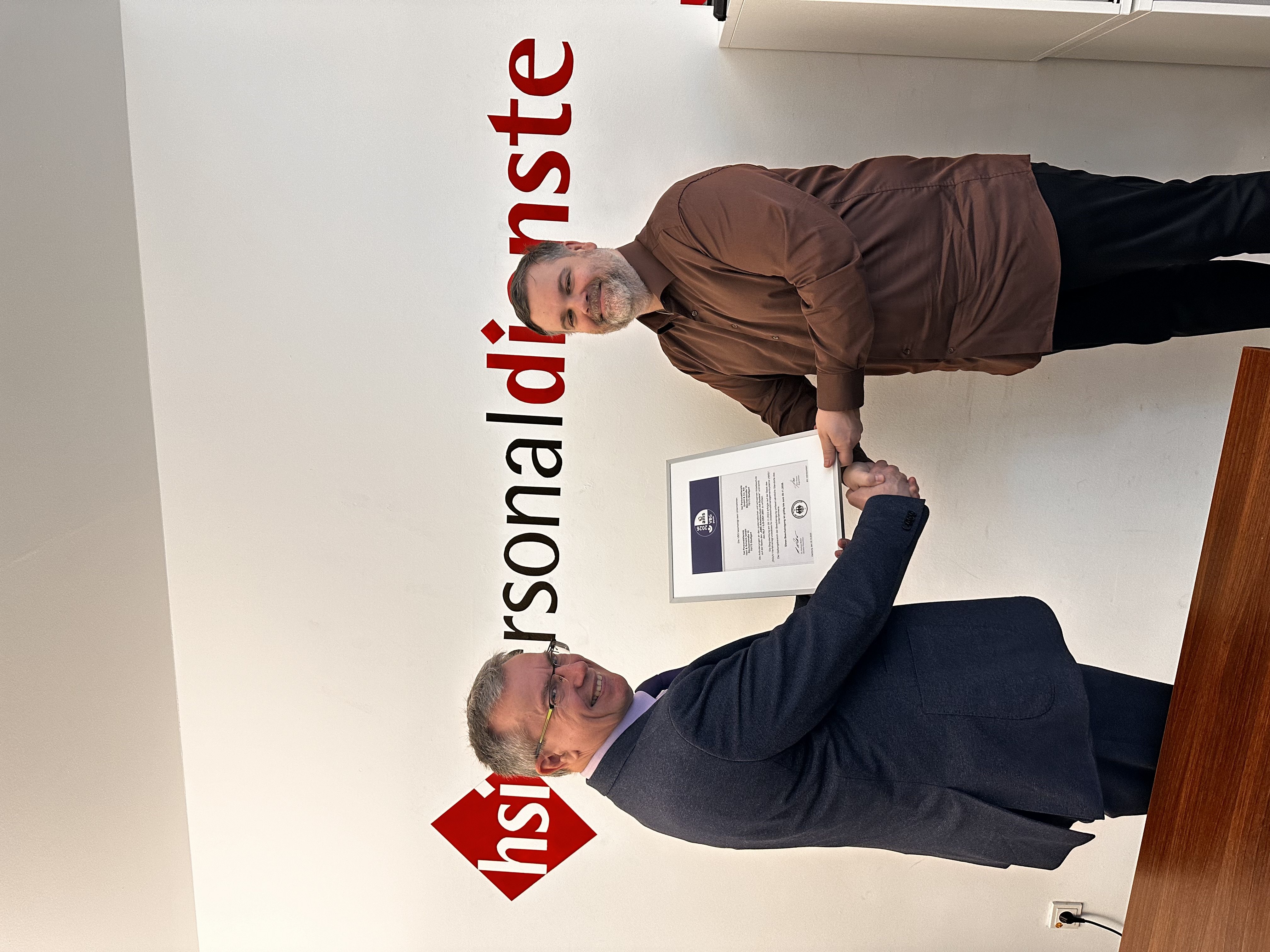 Die Bescheinigung ist für die hsi personaldienste hart & schenk gmbh sowie der hsi personaldienste gmbh & co. kg bis zum 30.11.2026 gültig.